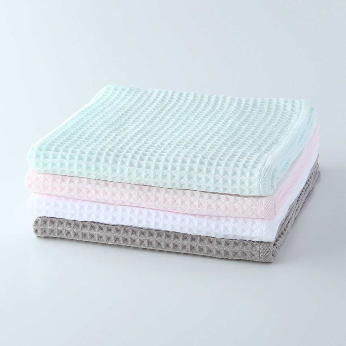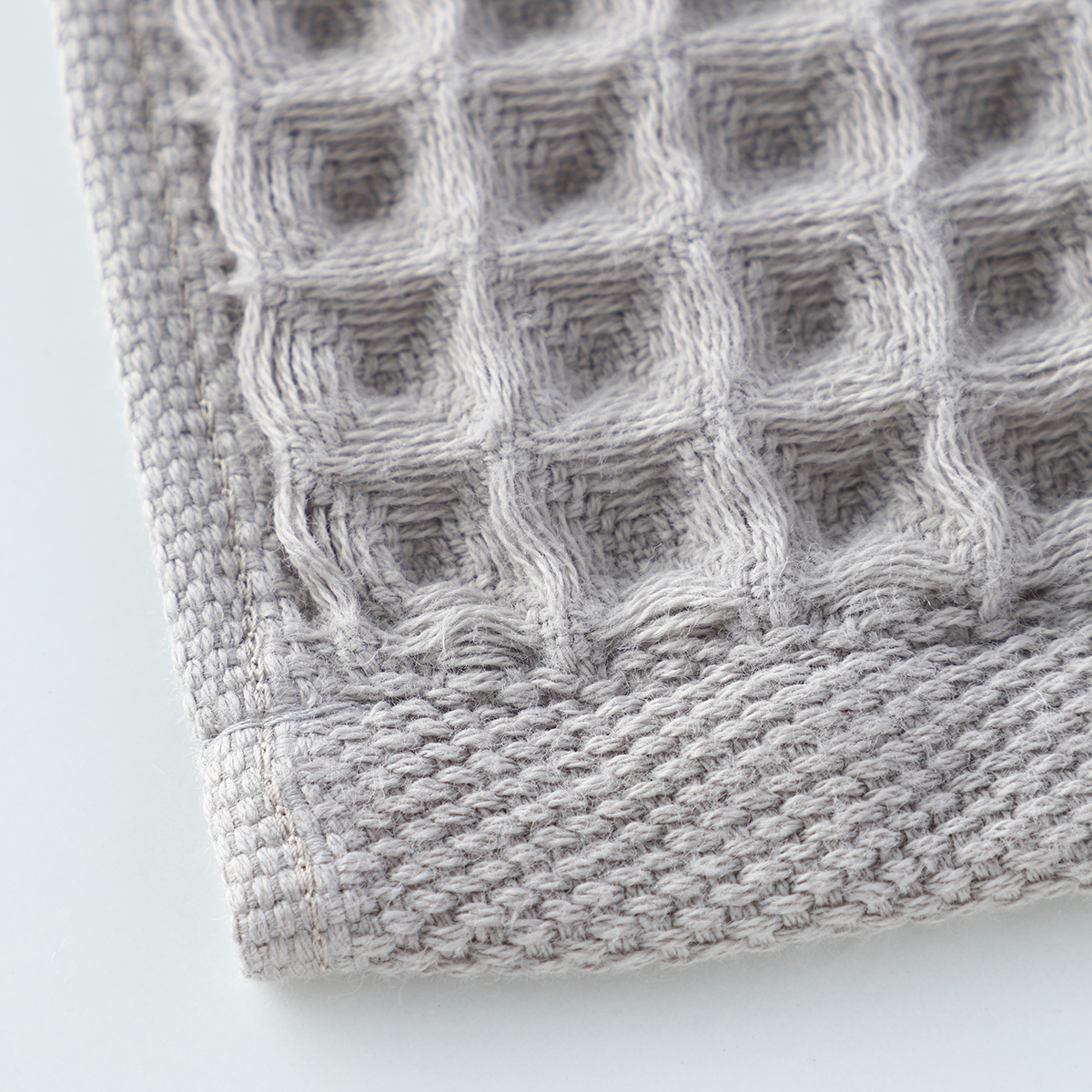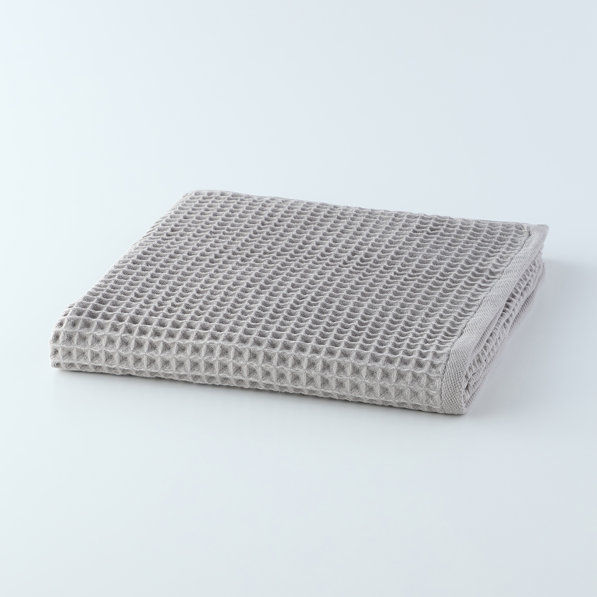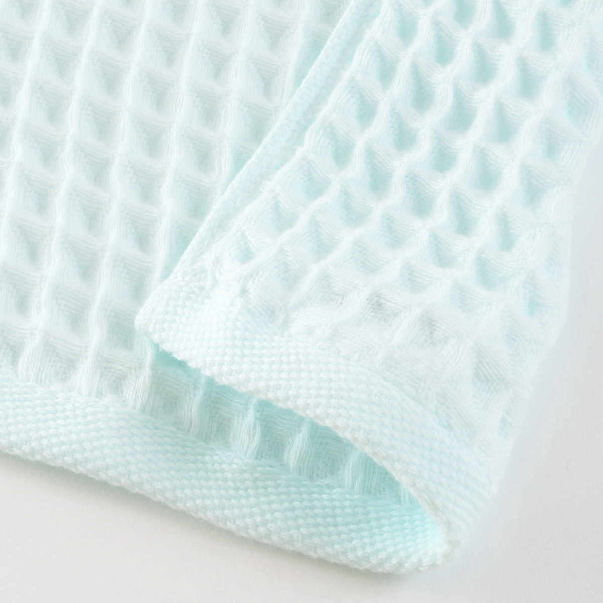 It is made from a unique hollow yarn with exceptional quality, utilizing crevices within the yarn itself to generously capture air. The unique 3-dimensional texture of Uchino’s Air Waffle structure feels luxurious and gentle on the skin. The characteristic of this unique weave offers the finest cushioning properties, resulting in an exquisitely lightweight and resilient towel, superior in water absorption and heat retention, and also quick drying.