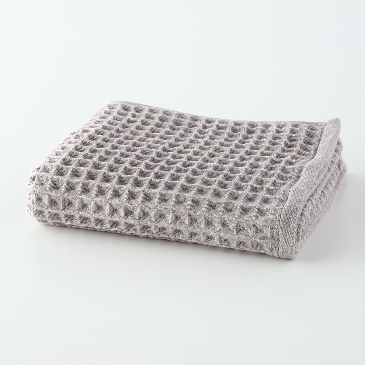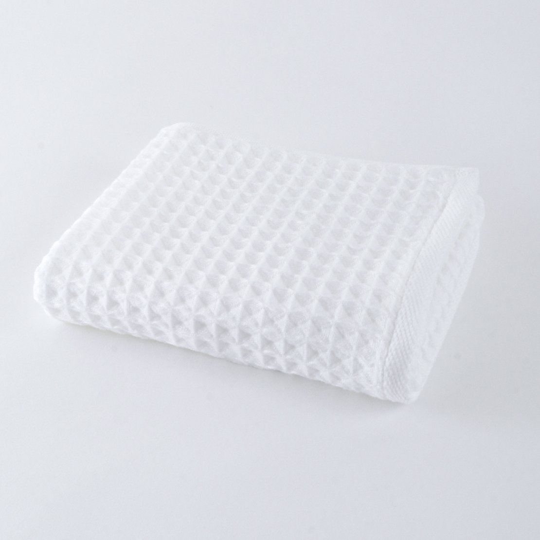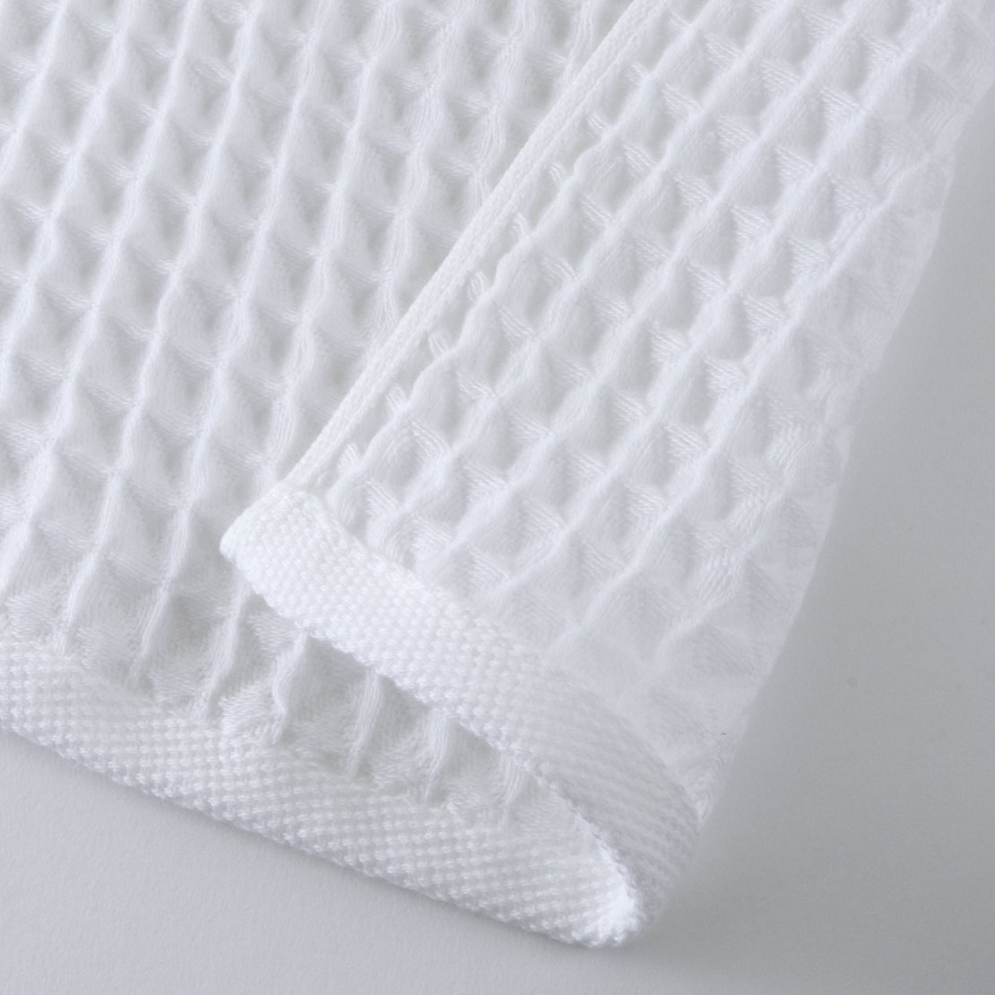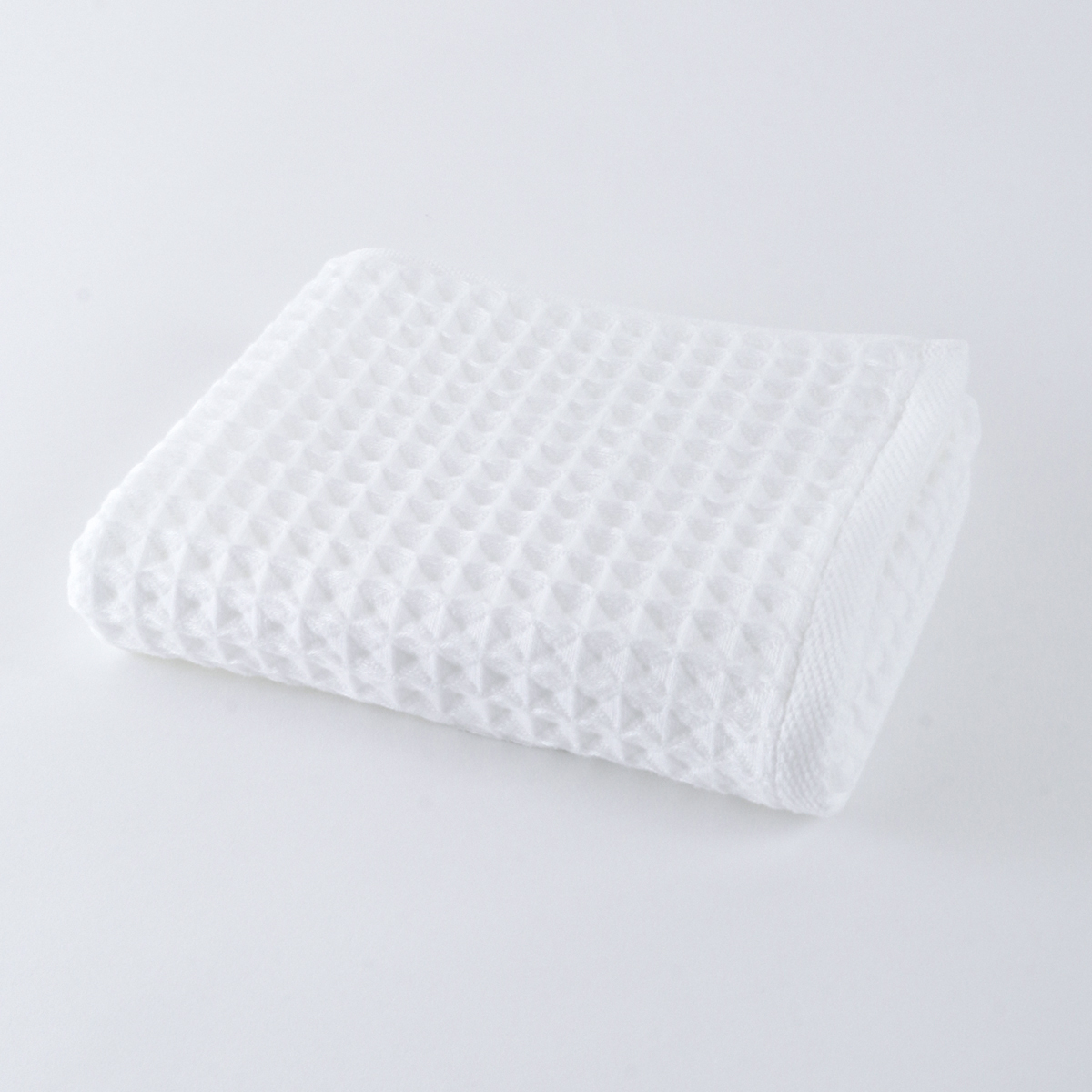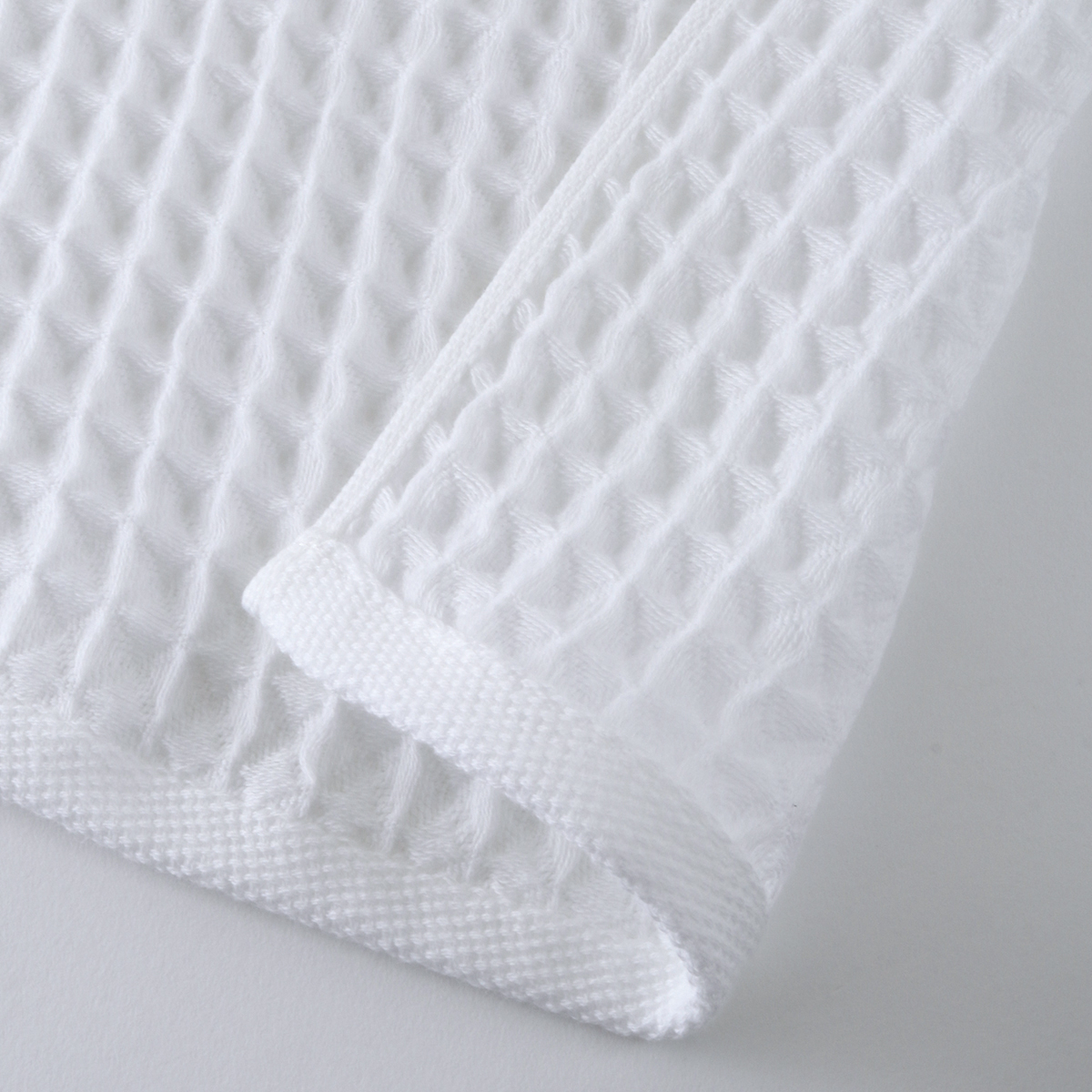 It is made from a unique hollow yarn with exceptional quality, utilizing crevices within the yarn itself to generously capture air. The unique 3-dimensional texture of Uchino’s Air Waffle structure feels luxurious and gentle on the skin. The characteristic of this unique weave offers the finest cushioning properties, resulting in an exquisitely lightweight and resilient towel, superior in water absorption and heat retention, and also quick drying.