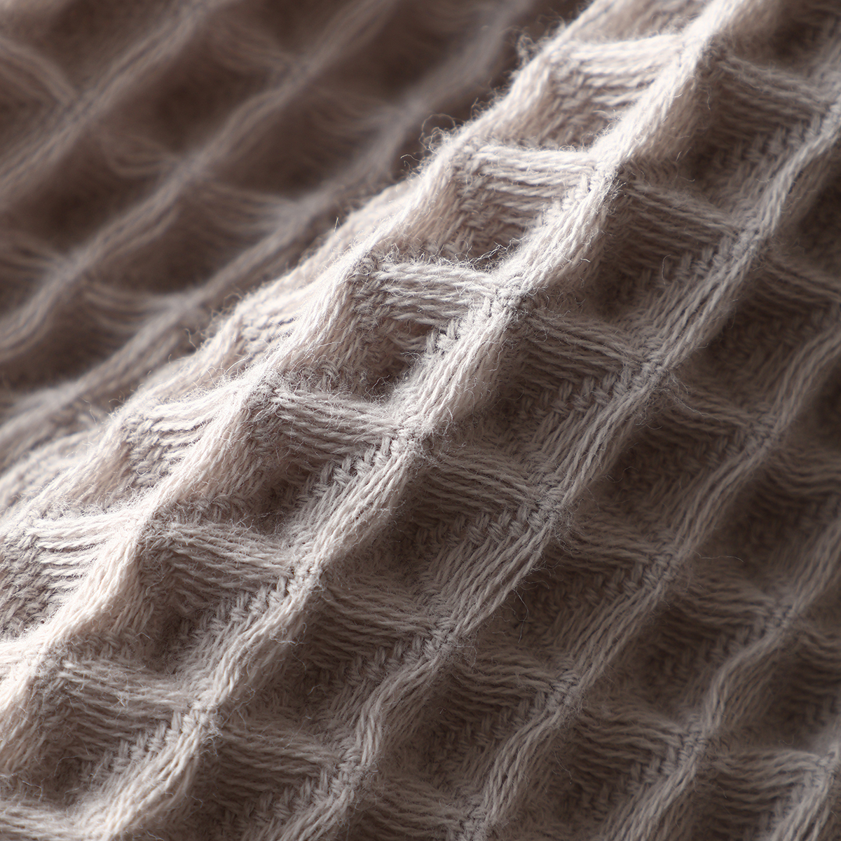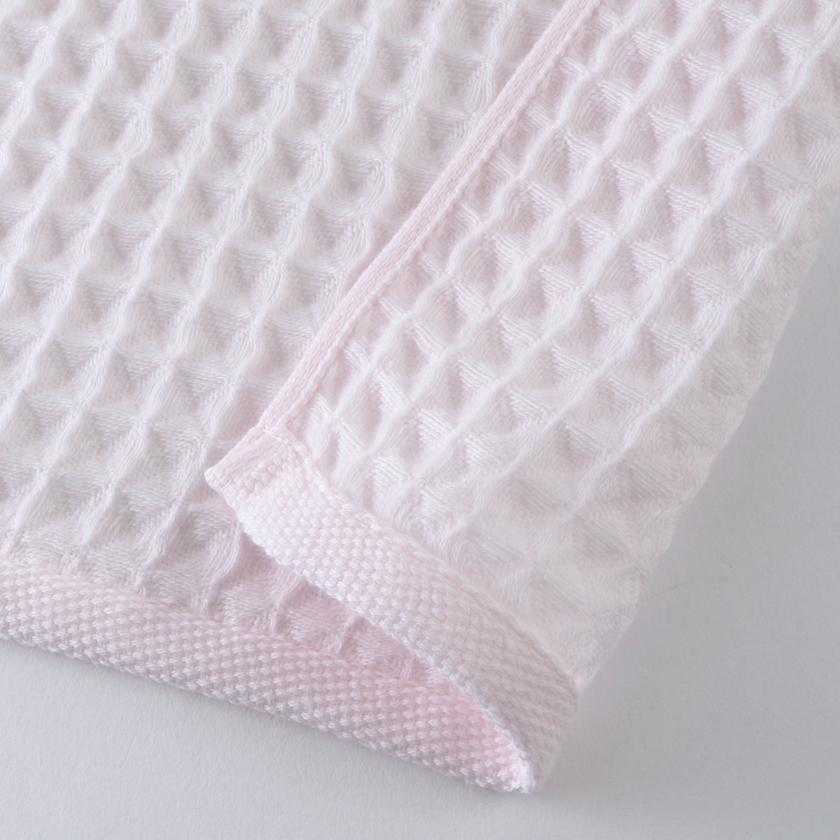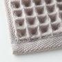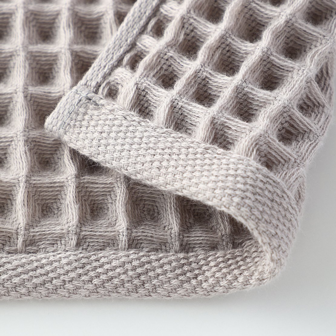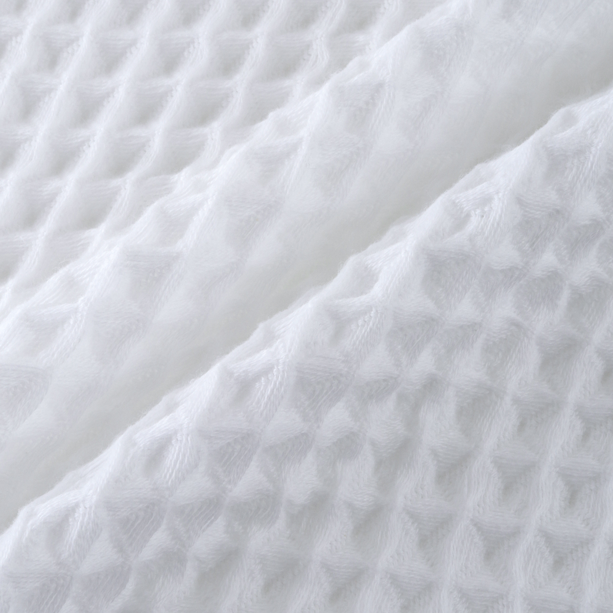 It is made from a unique hollow yarn with exceptional quality, utilizing crevices within the yarn itself to generously capture air. The unique 3-dimensional texture of Uchino’s Air Waffle structure feels luxurious and gentle on the skin. The characteristic of this unique weave offers the finest cushioning properties, resulting in an exquisitely lightweight and resilient towel, superior in water absorption and heat retention, and also quick drying.
