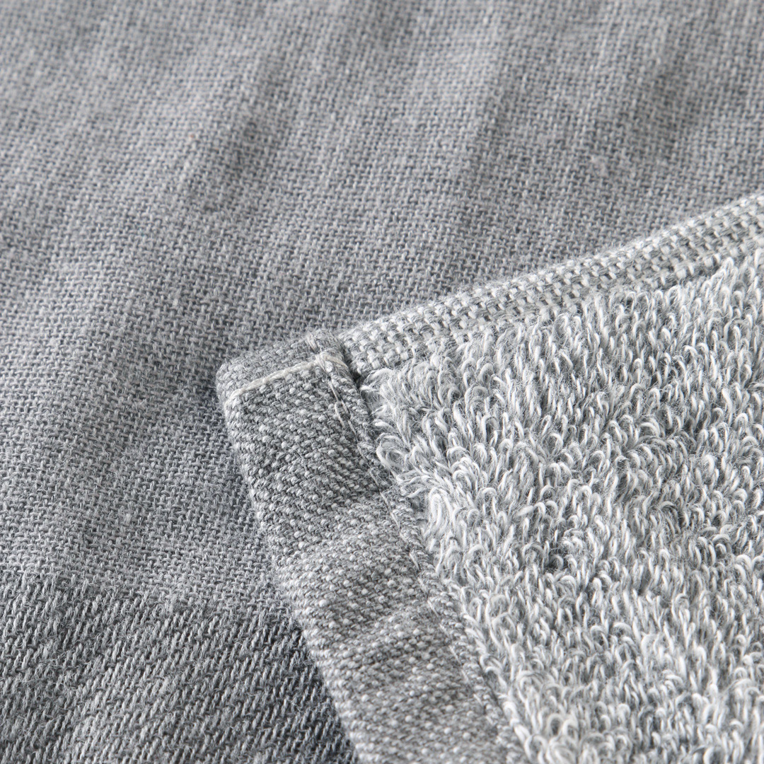 Bincho charcoal is a top-quality charcoal made by burning Kishu ubame oak at the extremely high temperature of 1300 degrees Celsius. This charcoal is crushed into superfine particles and blended into rayon fibres using special technology to create Kishu-Binchotan Fibre. The fibre is then blended with cotton yarn to weave the charcoal towel. This uniquely beautiful and rustic colouring evocative of Japan’s “wabi-sabi” aesthetic is something that chemical dyes could never render.