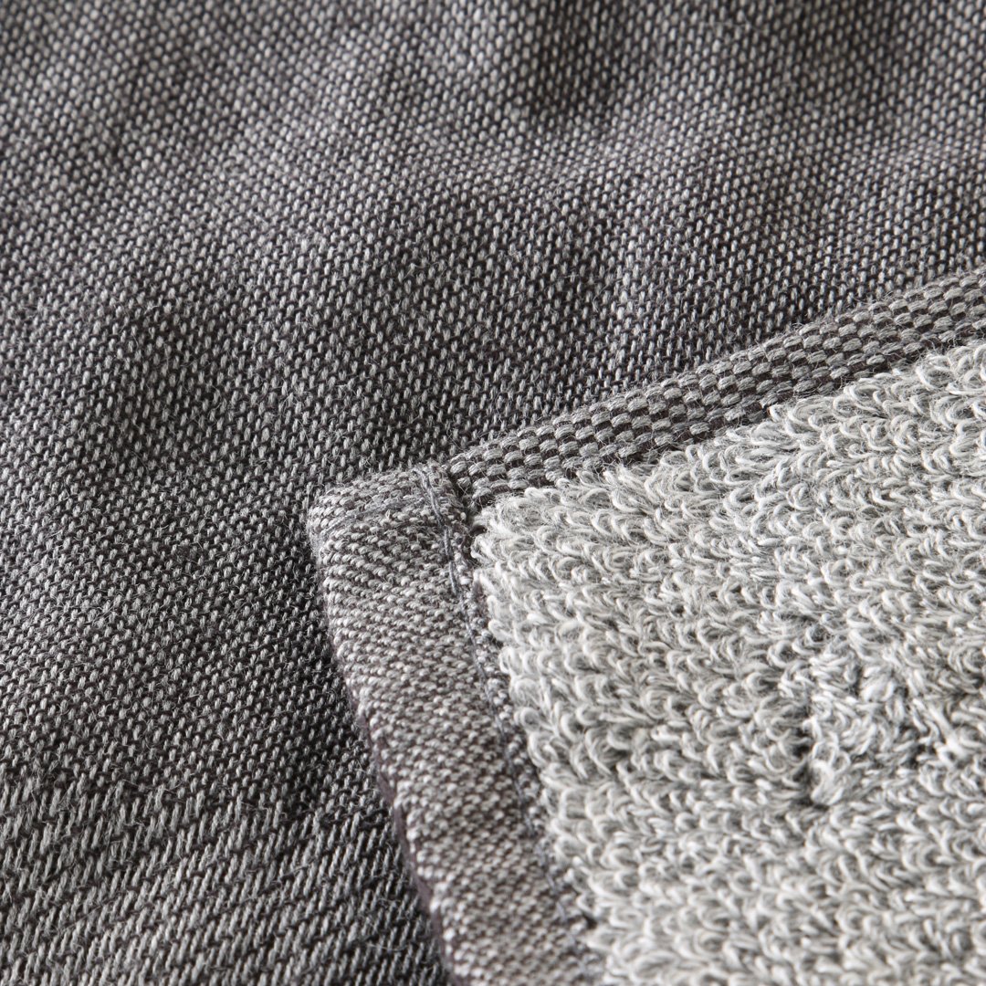 Bincho charcoal is a top-quality charcoal made by burning Kishu ubame oak at the extremely high temperature of 1300 degrees Celsius. This charcoal is crushed into superfine particles and blended into rayon fibres using special technology to create Kishu-Binchotan Fibre. The fibre is then blended with cotton yarn to weave the charcoal towel. This uniquely beautiful and rustic colouring evocative of Japan’s “wabi-sabi” aesthetic is something that chemical dyes could never render.