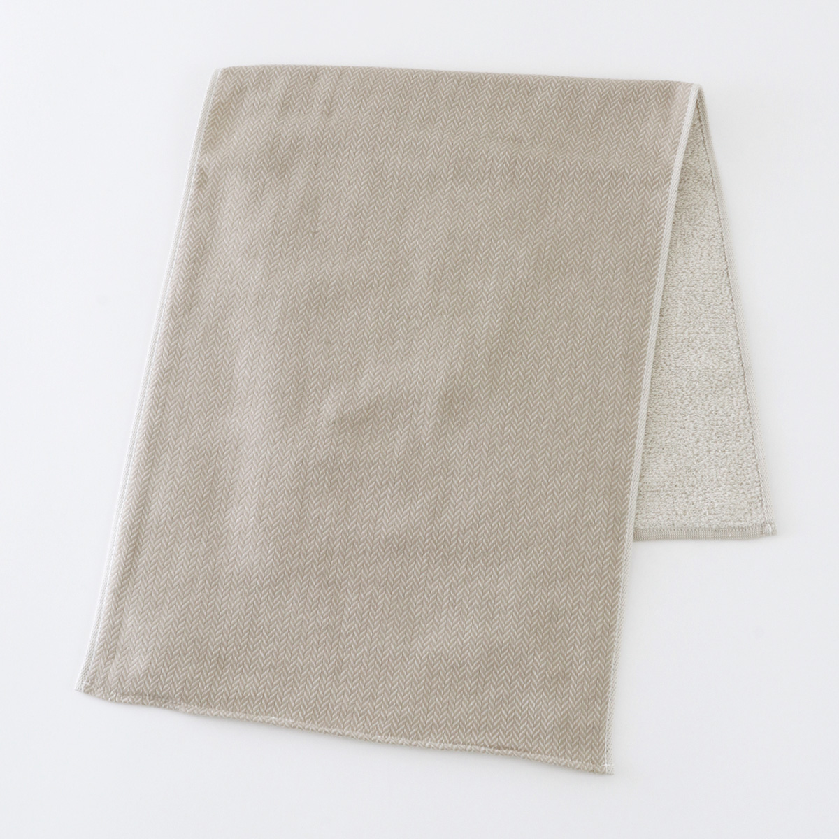 Using the pigment extracted from the beans after brewing the coffee as a dye, organic cotton without bleaching was carefully dyed, and gauze and pile were combined on the front and back to weave it into a double face. The color changes little by little with each wash, deepening the taste.