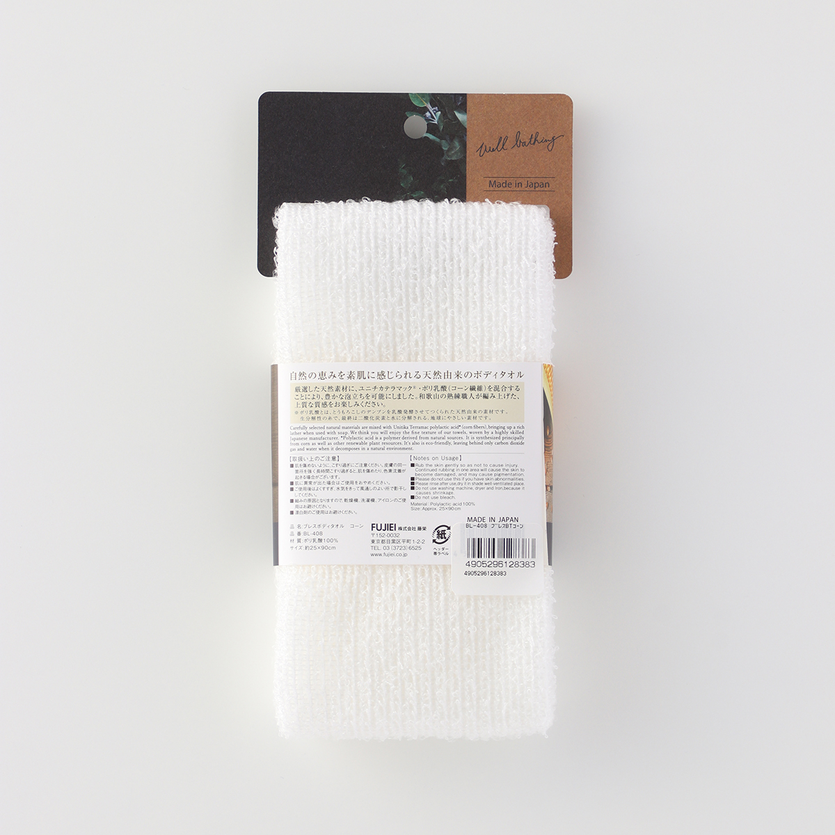 By mixing carefully selected natural materials with Unitika Terramac polylactic acid (corn fiber), we have made it possible to create a rich lather. Enjoy the high-quality texture woven by skilled craftsmen in Wakayama.