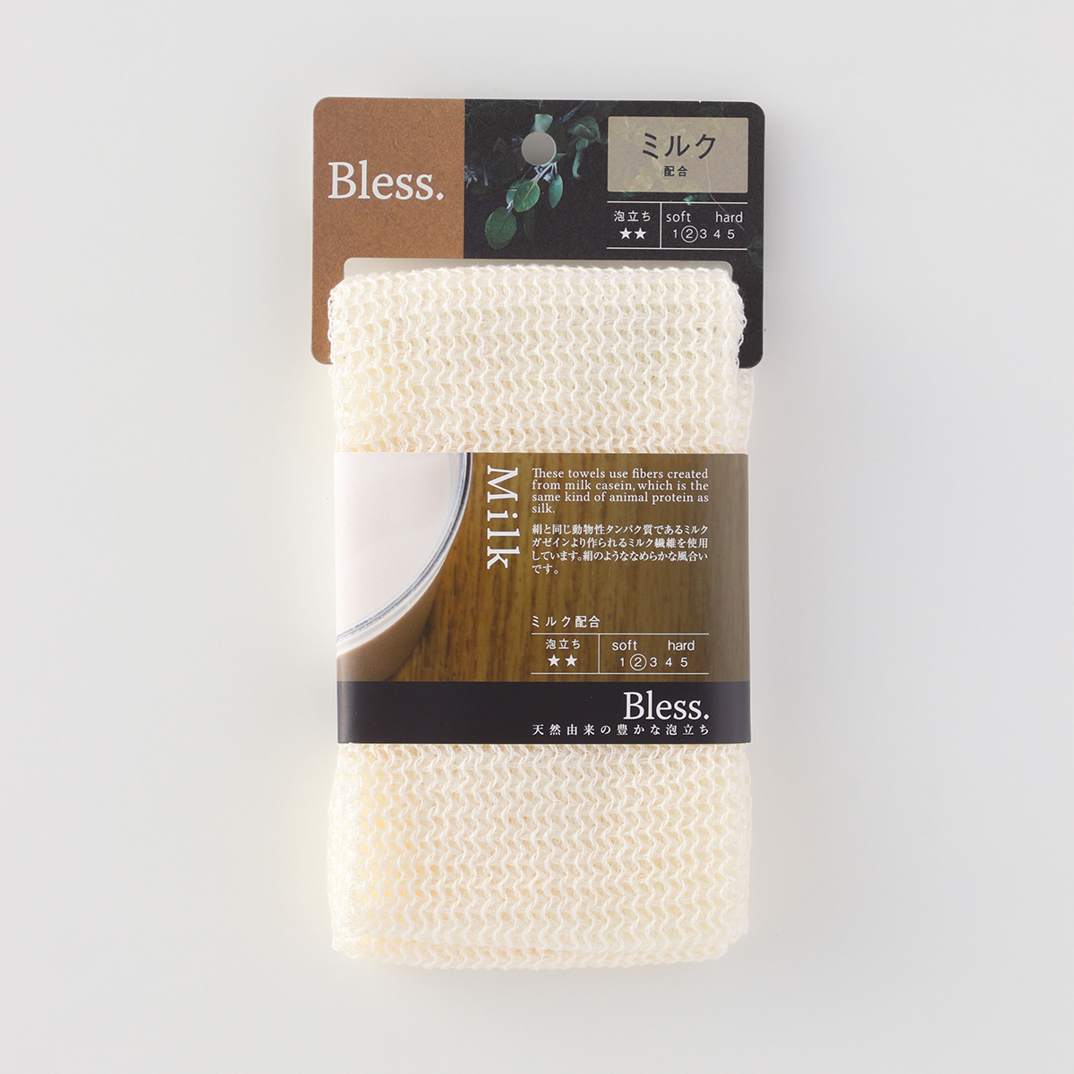 By mixing carefully selected natural materials with Unitika Terramac polylactic acid (corn fiber), we have made it possible to create a rich lather. Enjoy the high-quality texture woven by skilled craftsmen in Wakayama.