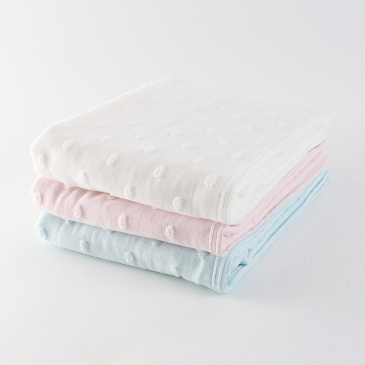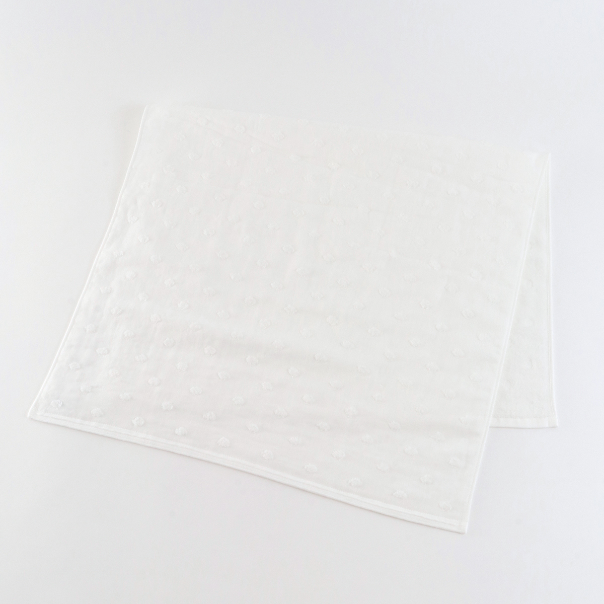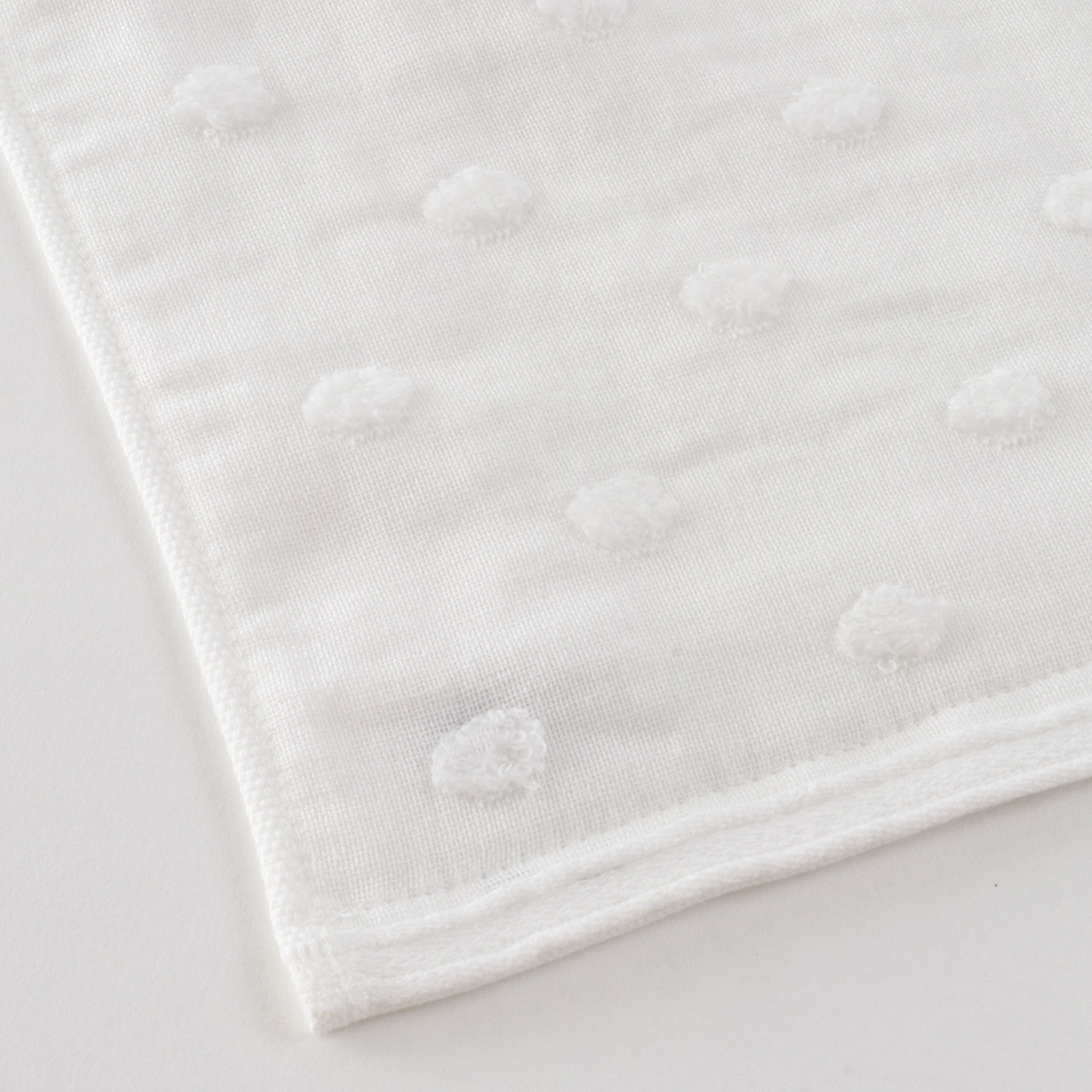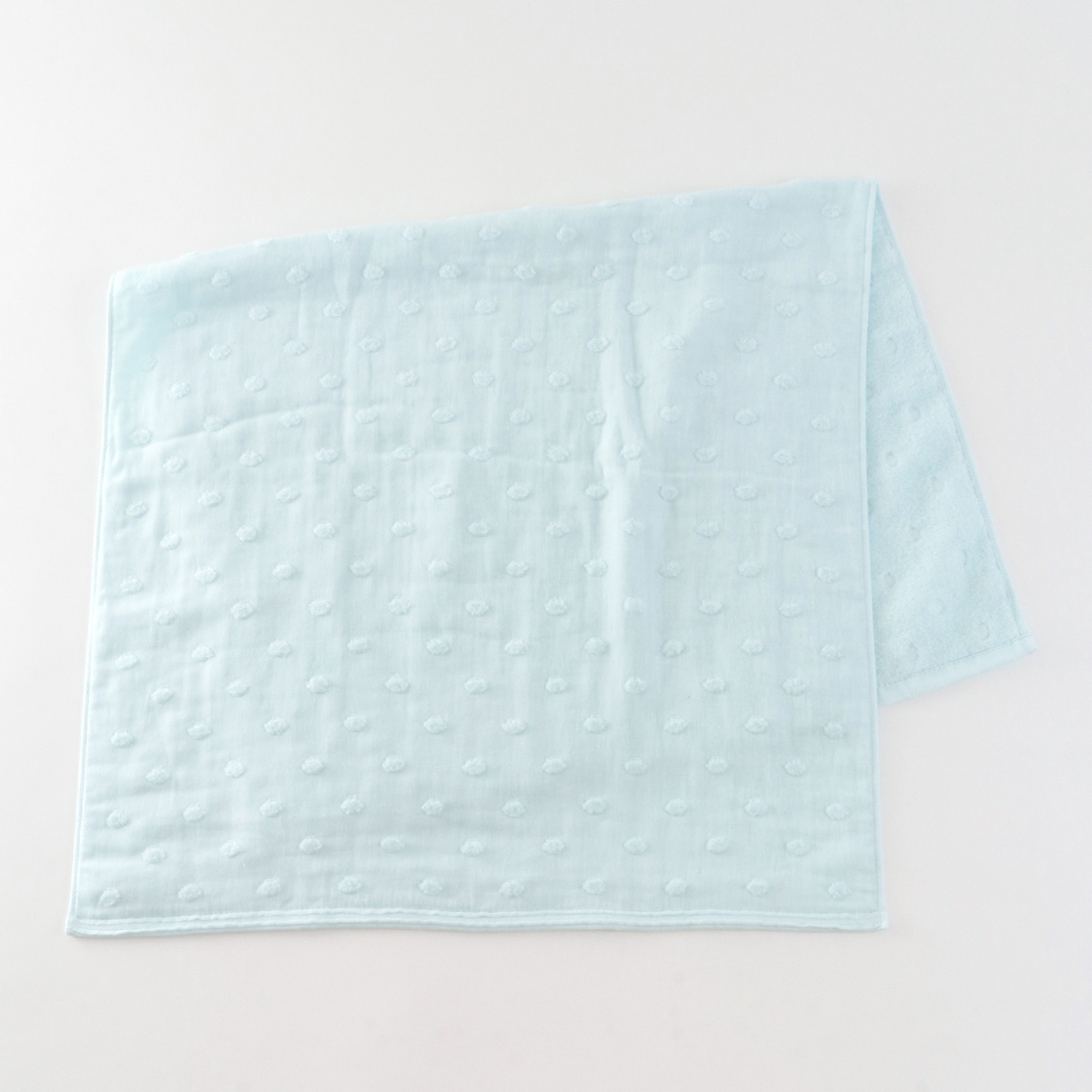 The Fuwafuwa Gauze Dot is weaved using the original non-twisted yarn. This allows it to be soft to touch and light in weight. Since the gauze and pile are woven on the front and back, it is very soft to touch and is thin, light and easy to dry. Convenient to store and it is travel friendly.