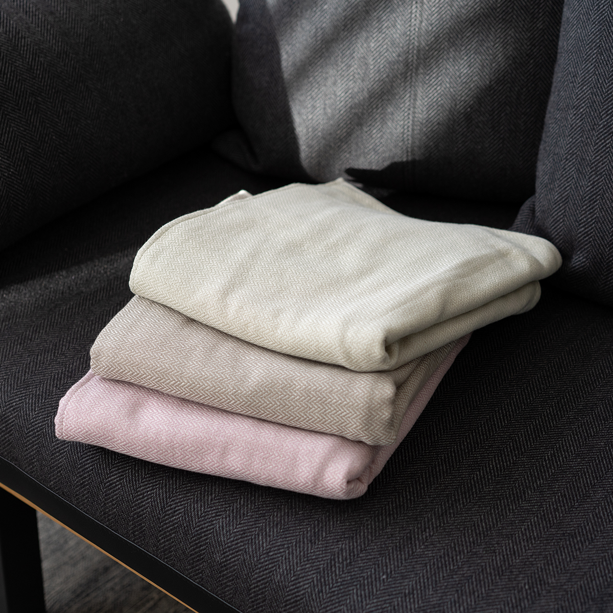 Using the pigment extracted from the grapes after the wine was squeezed, organic cotton without bleaching was carefully dyed, and gauze and pile were combined on the front and back to weave it into a double face. The color changes little by little with each wash, deepening the taste.